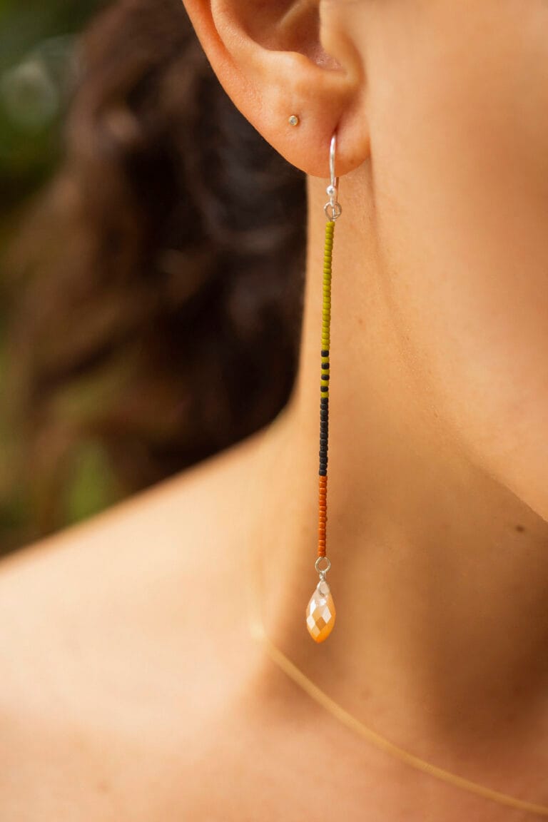 Mostacillas de Toho, lagrima de cristal con pin de plata 950.