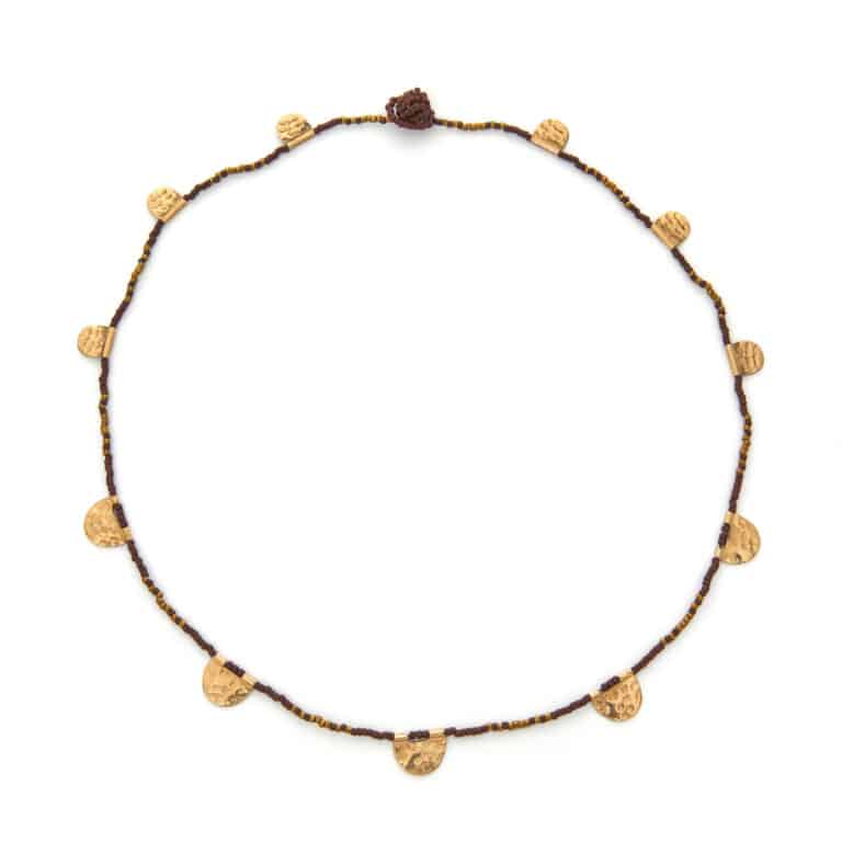Material: Bronce y chaquiras toho #15 de color dorado y marrón mate.